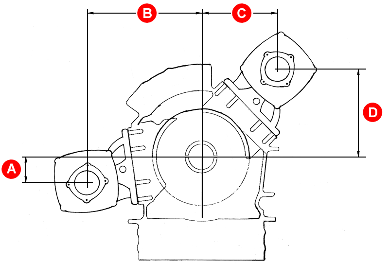 | Negativa mått anger placering under centrumlinjen. Rotationsriktning samma som från motorn. | ||||